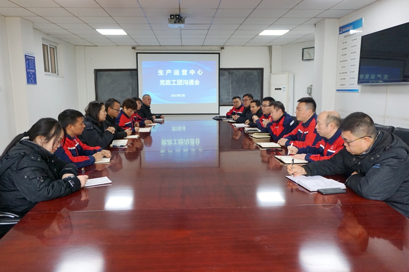 2月1日,生产运营中心在中心会议室首次召开了党政工团沟通交流会,会议由公司总经理助理、安全环保总监、生产运营中心总经理郭冰主持,生产运营中心党政工团负责人及其相关人员参加会议。
