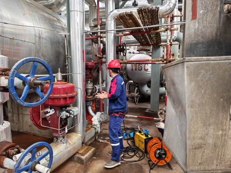 当日,化肥制造中心巡检人员在对装置区进行例行检查时,敏锐发现一处蒸汽管线接口附近存在轻微蒸汽异常逸散现象。经细致排查,迅速定位为一个新形成的微小砂眼,正持续向外喷射蒸汽。一旦泄漏扩大,不仅会造成能源浪费,更可能导致装置非计划停车,甚至引发安全事故。